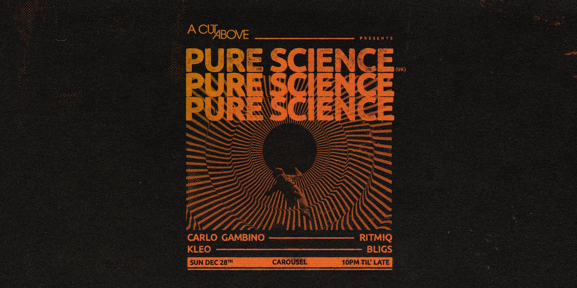 Pure Science has performed regularly as a guest at legendary clubs and parties around the globe for decades including Wiggle, Rage, Pure, Telepathy, The End, Twilo, Zouk, Dungeons, Fuse, UFO club Berlin, The Bomb, Omen Club Frankfurt, Roxy Amsterdam, Sonar Vancouver, Sonna (Montreal), The Edge Sao Paolo, Club UK, Ministry Of Sound, Limelight NYC, Maze USA and Glam Slam LA to name but a few.