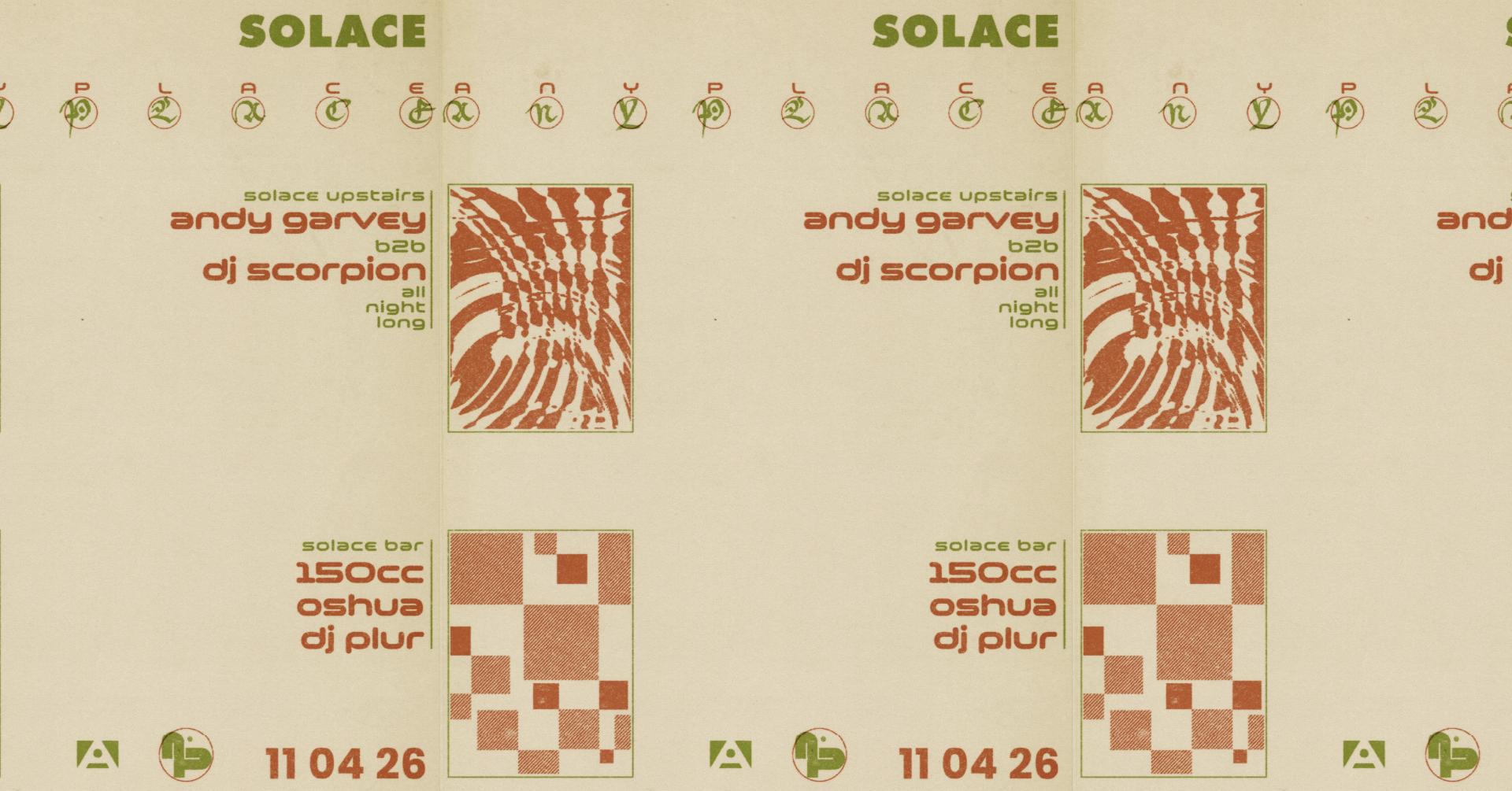 Fresh off a heaving Pitch 2026 set, Andy Garvey and DJ Scorpion land at Solace for a rare all night long B2B session this April.