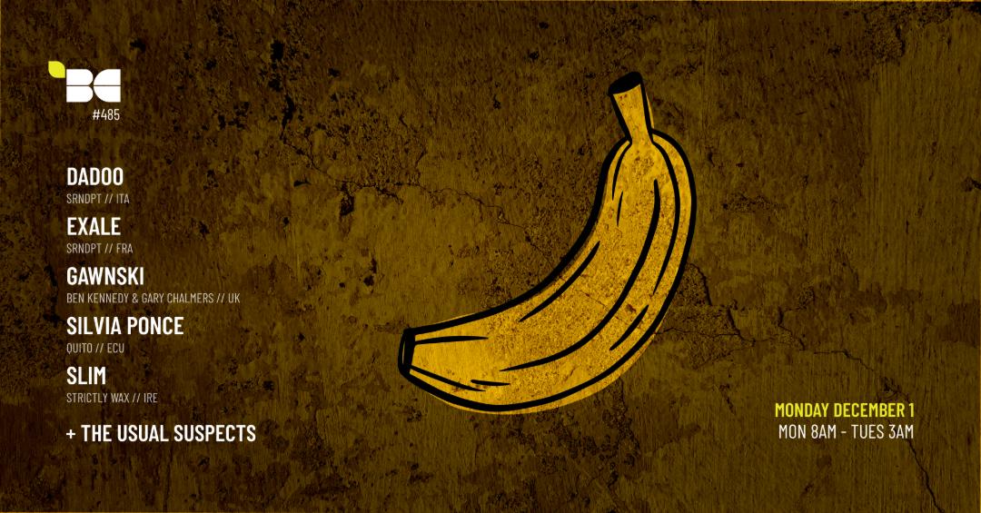 This week: Dadoo (SRNDPT // ITA) Exale (SRNDPT // FRA) Gawnski (Ben Kennedy & Gary Chalmers // UK) Silvia Ponce (Quito // ECU) Slim (Strictly Wax // IRE) + The Usual Suspects