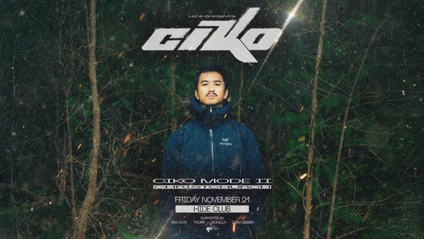 Known for his fast paced, technical mixing ability, and unparalleled energy, Auckland-based DJ Ciko has been on an absolute tear of late. A prominent social media DJ with 16k followers on Instagram and over 50k on TikTok, Ciko has been garnering widespread recognition as one of the ones to watch in the Drum and Bass scene, with major artists like Hedex and Bou engaging with his content. As well as his recent debut in Perth, Ciko has been ripping up and down Aotearoa, selling out multiple headline shows, supporting some of electronic music's biggest names like Sota, Primate, and Skepsis, and playing at Rhythm and Vines festival. A natural behind the decks and in front of the camera, with an undeniable skill for not only mixing but community engagement, 2024 is just the start for Ciko.
