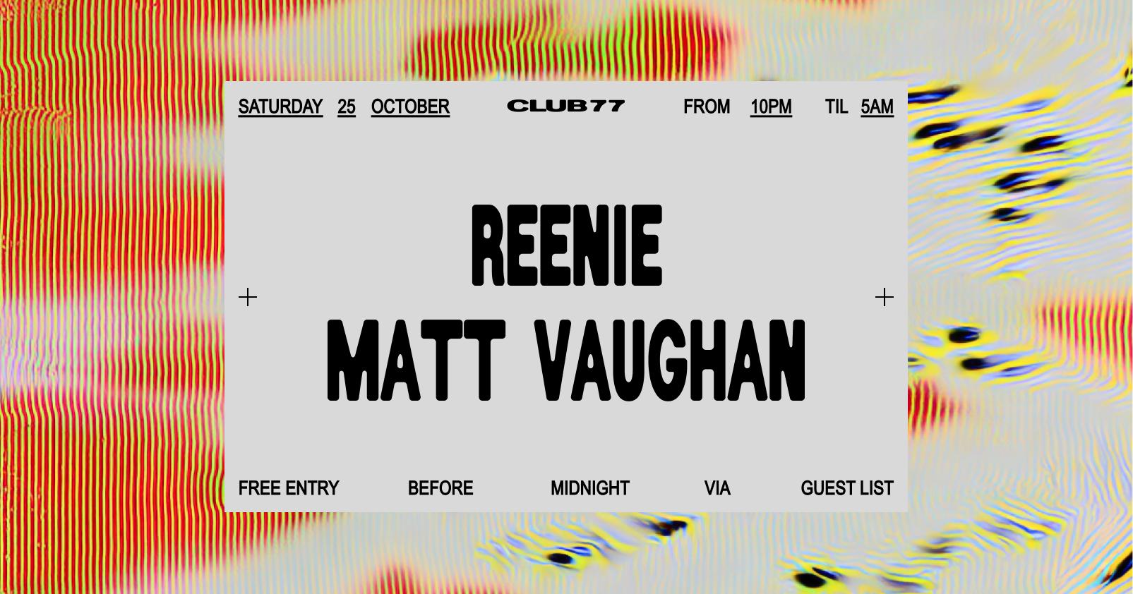 Event Info & Guest List: https://www.club77.com.au/events/club-77-reenie-matt-vaughan