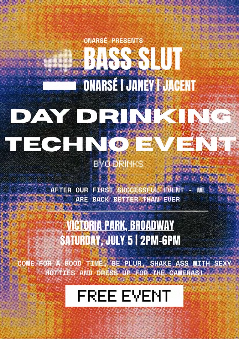 (FREE) BYO DAY DRINKING TECHNO EVENT - Mixmag Australia Buy tickets for (FREE) BYO DAY DRINKING TECHNO EVENT on 05 Jul 2025 at Victoria Park, Parramatta Road, Broadway Sydney, NSW, Australia https://mixmag.net.au//free-byo-day-drinking-techno-event