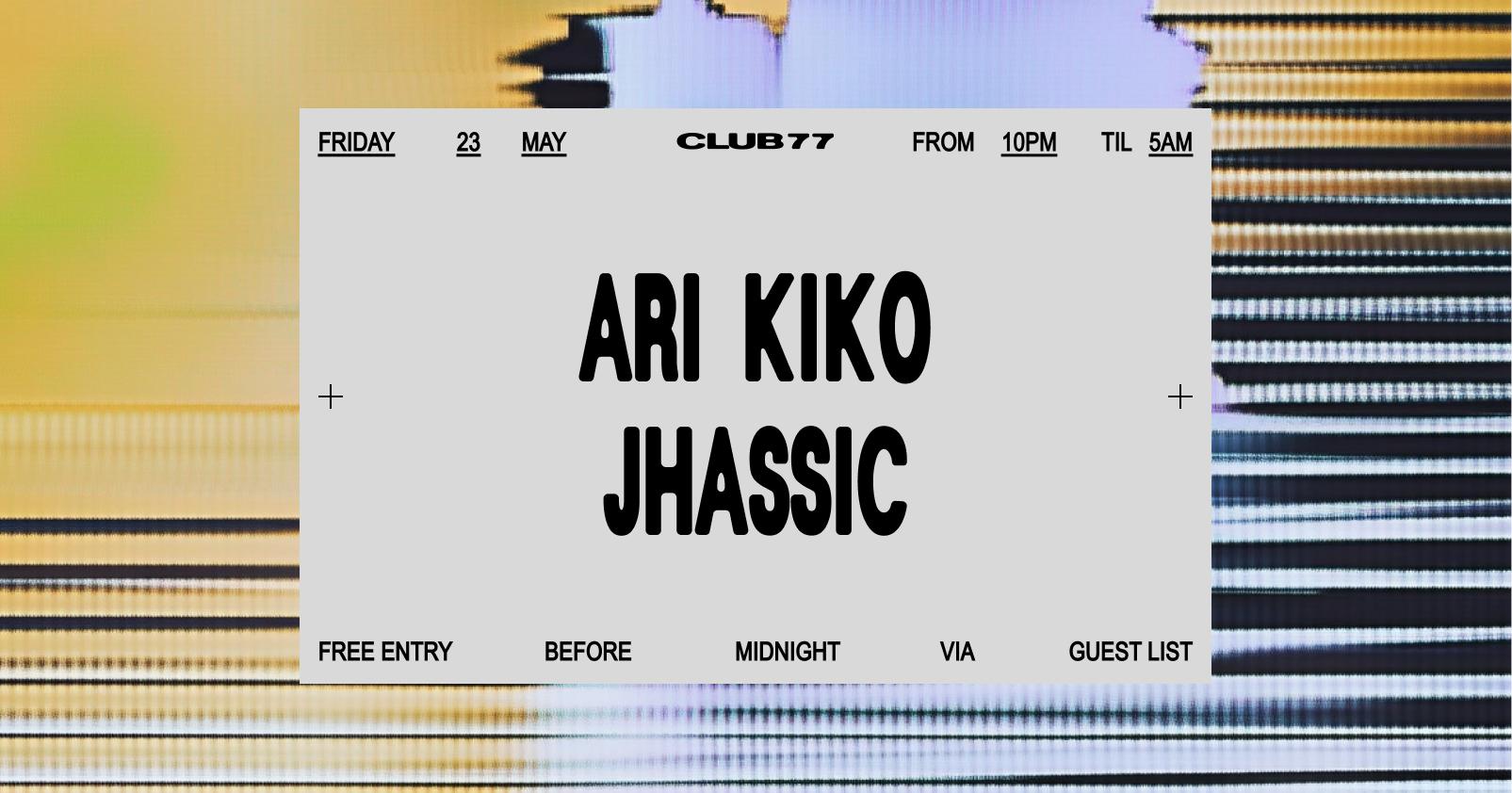Event info & guest list here: www.club77.com.au/events/fridays-at-77-ari-kiko-jhassic