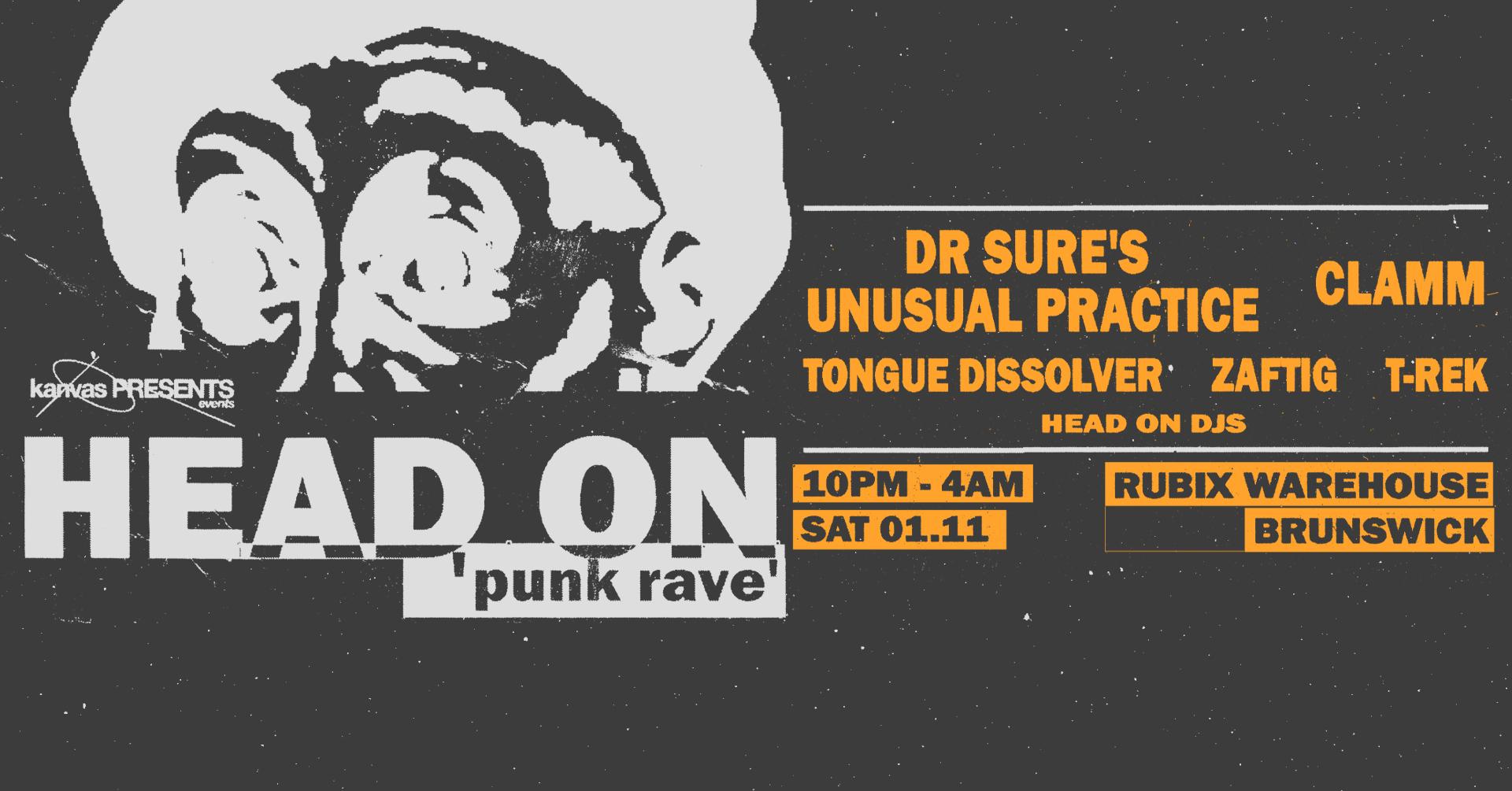 Introducing Head On — a collision course between punk and electronic music. Tearing through an inner-north warehouse with a rare late-night licence, this is live music without a curfew — raw, loud, and unapologetic.