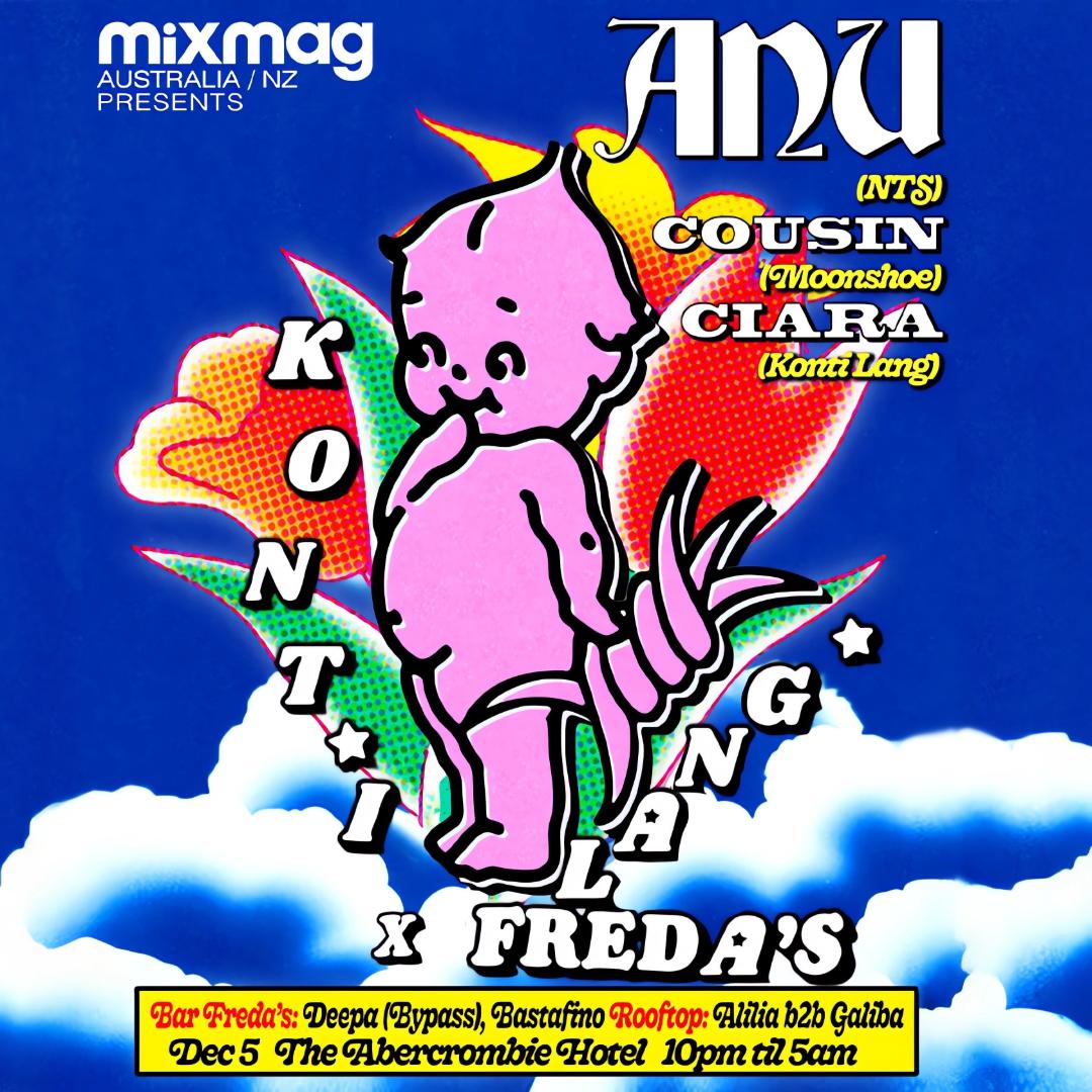 Mixmag ANZ pres. KONTI LANG x Freda’s, a collaborative undertaking featuring some of Gadigal Land/Sydney’s most esteemed selectors, & one member of NTS Radio royalty.