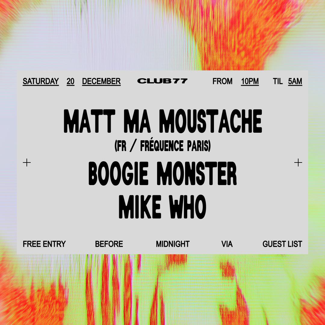 Events Club 77: Matt Ma Moustache (FR / Fréquence Paris), Boogie Monster, Mike Who 10:00 PM, 20 Dec 2025