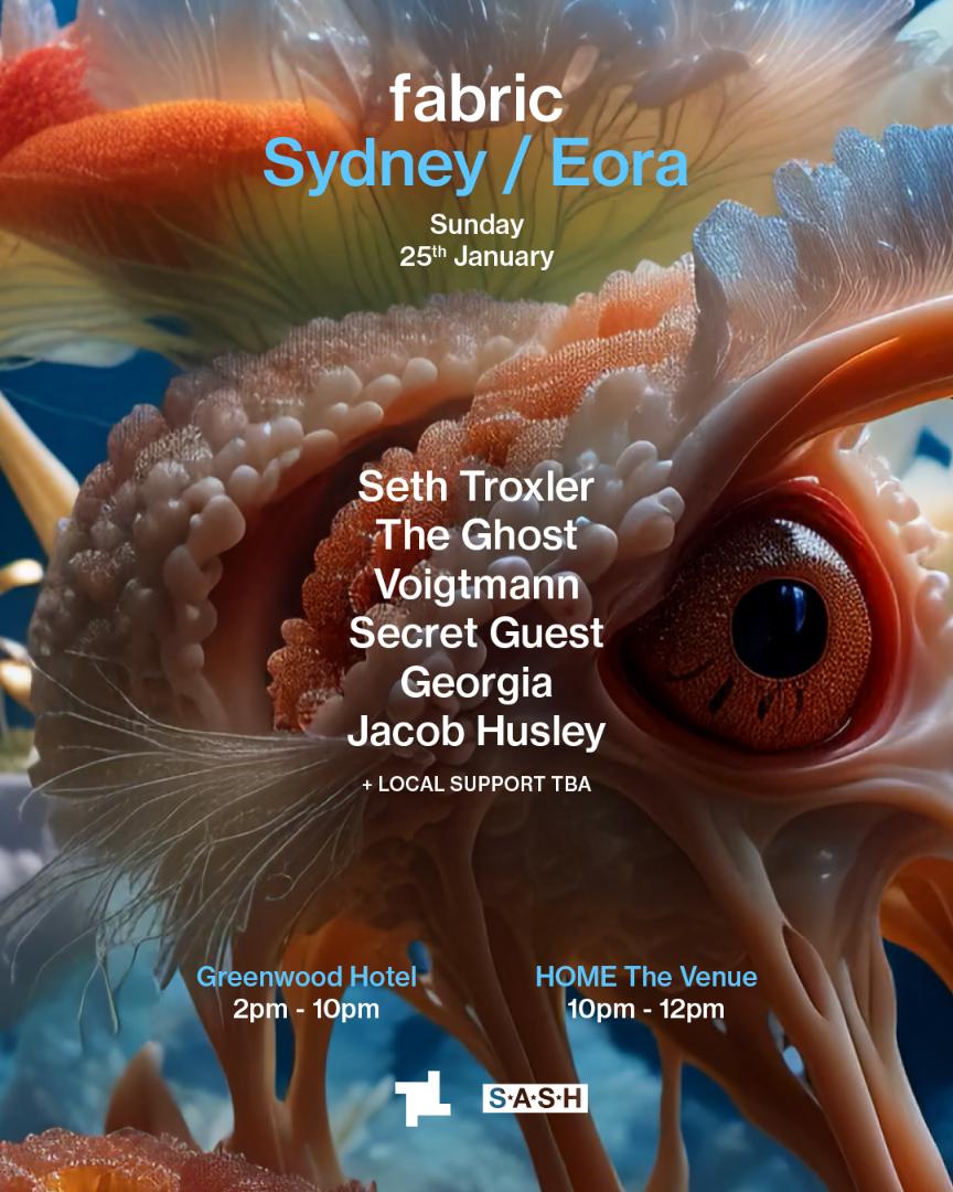 Events fabric x S.A.S.H Sydney: Seth Troxler, The Ghost, Voigtmann, Secret Guest, Georgia & more. 02:00 PM, 25 Jan 2026