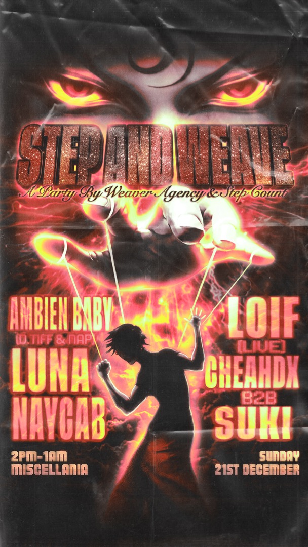 Events Step and Weave with Ambien Baby, LOIF (live), Luna, naycab, Cheahdx & Suki 02:00 PM, 21 Dec 2025