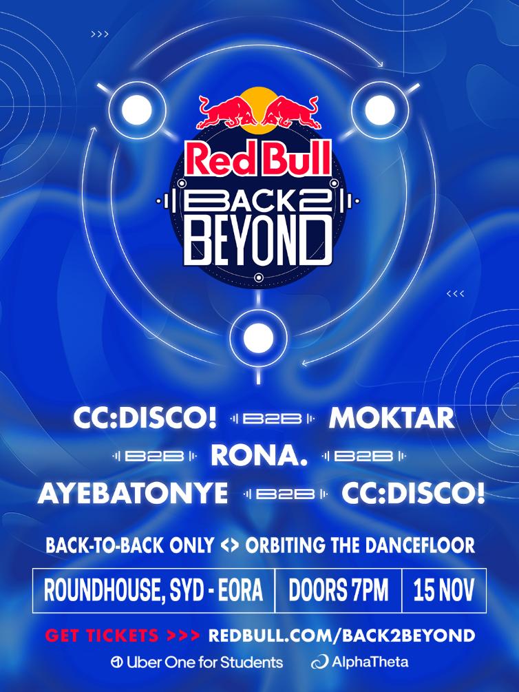 Red Bull Australia today announces that global event Red Bull Back2Beyond is coming to Australia for the very first time. Taking over Sydney/Eora’s Roundhouse on Saturday 15th November 2025, the event will feature Australia’s own CC:DISCO! who has expertly curated the lineup of Aussie artists who will join her for a night-long chain of back-to-back sets, across three stages.