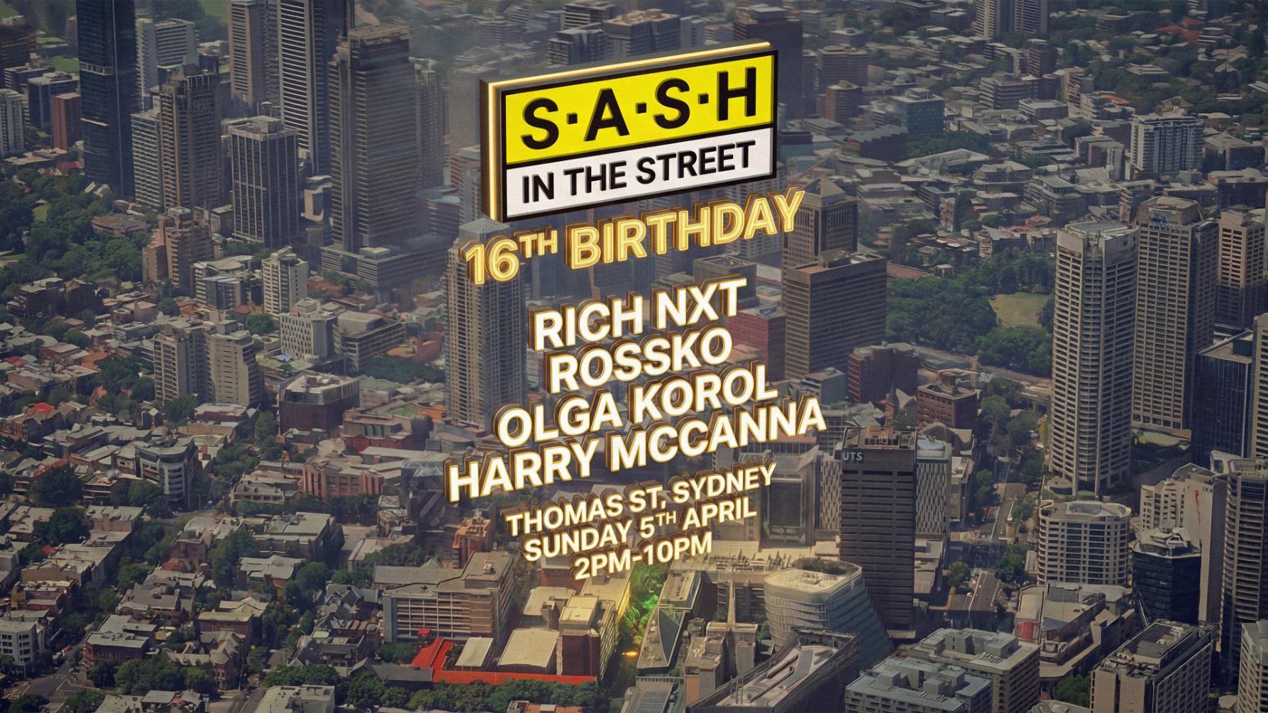 This Easter Long Weekend, S.A.S.H celebrates 16 years with our first ever Street Party right in the heart of our home city. That's right, we're shutting down an entire street and bringing in our new Funktion One rig - alongside a whole host of extra production - to deliver a delicious degustation of proper house music right down the middle of the road. S.A.S.H in the street offers a completely unique experience for Sydney and we’ve brought a lineup to match the occasion; with 4 international headliners taking to Thomas Street in celebration of our Sweet 16th. Arguably one of best DJs in the world at the moment, we had to bring Harry McCanna back to Sydney for this one. He's joined by one of Ukraine's finest exports, Olga Korol, now based in Berlin, the Body Parts co-founder was seriously impressive when we last hosted her at UNSW Roundhouse. Finally, long time S.A.S.H favourites Rich NxT & Rossko round out the lineup for what is shaping up to be a monumental occasion. This one is not to be missed! As always, you bring you dancing shoes; we'll provide the rest. See you on the dance floor xx