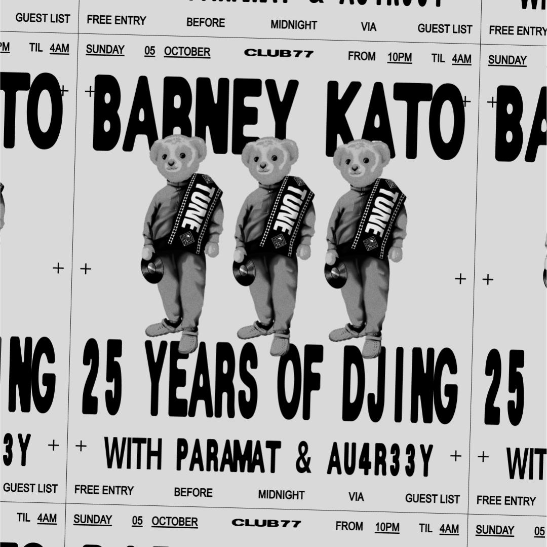 Event Info & Guest List: https://www.club77.com.au/events/barney-kato-25-years