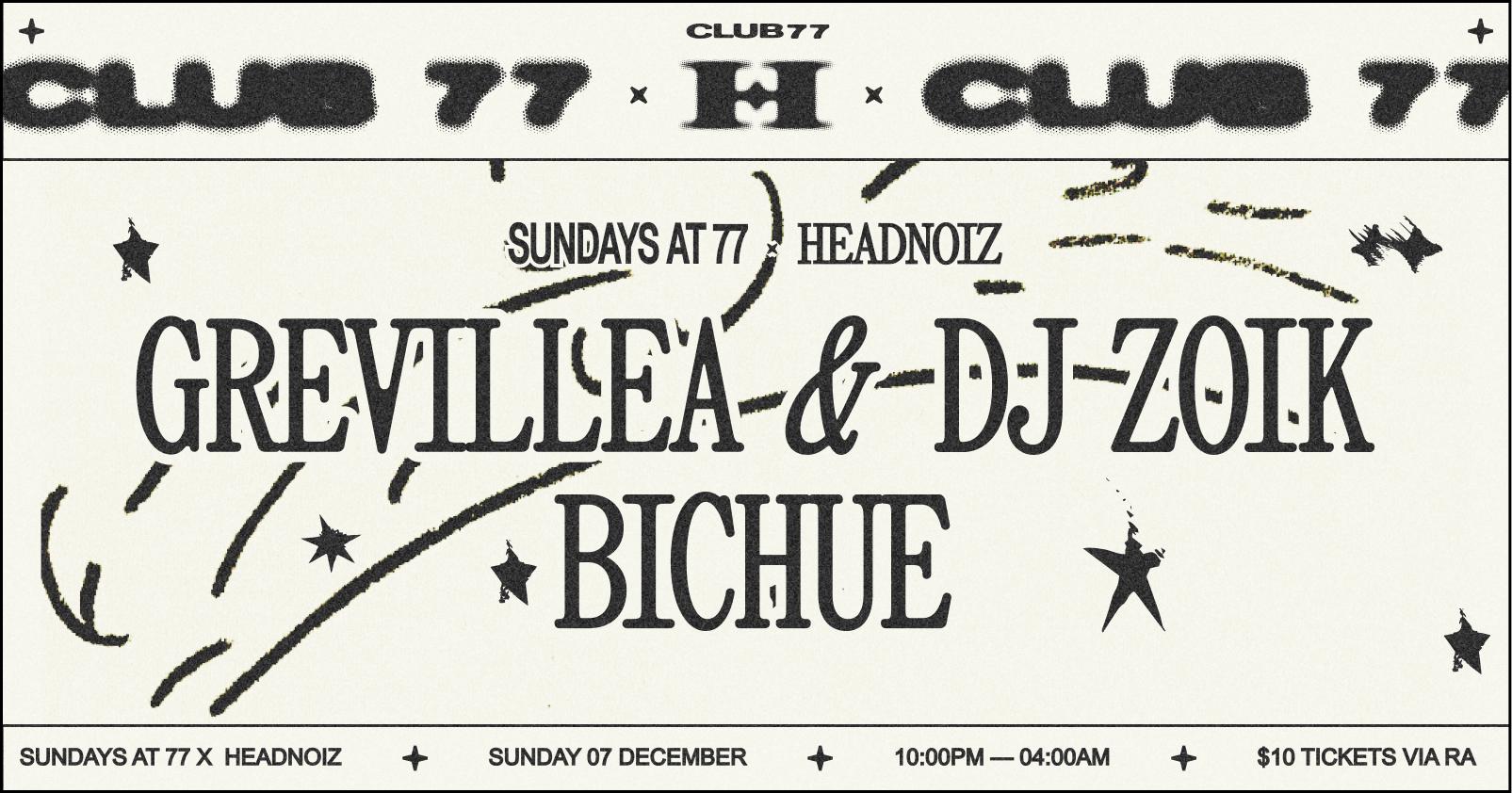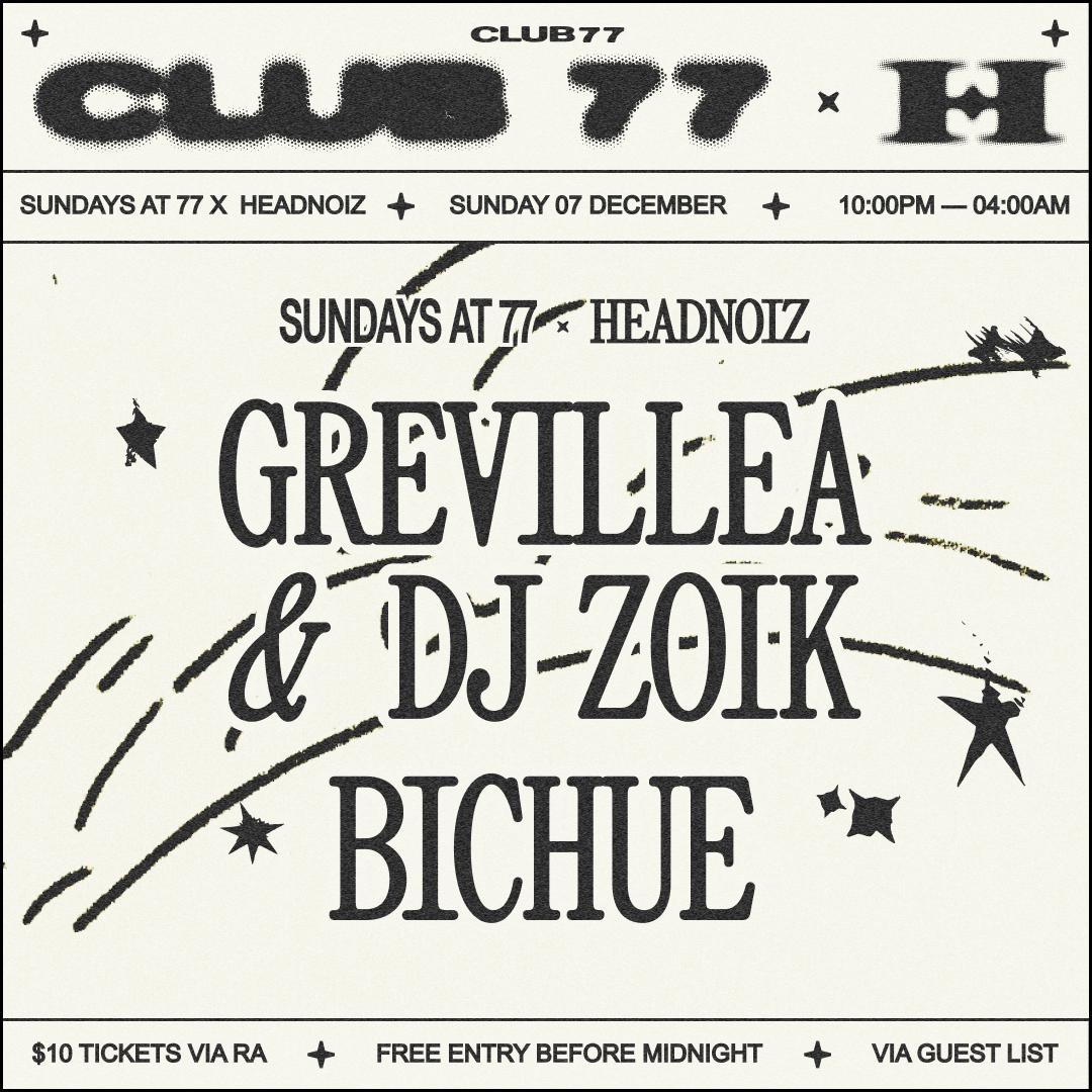 Sundays at 77 x Headnoiz: Grevillea & DJ Zoik, Bichue