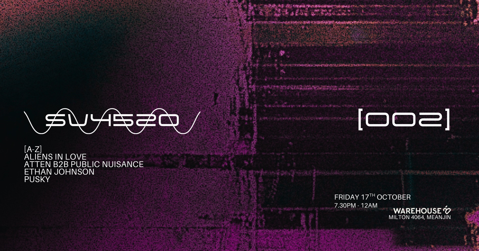 After a sold-out first event, SV4520 returns with [002]. A physical rave experience, bridging the raw intensity of European club culture with Meanjin’s rising underground.