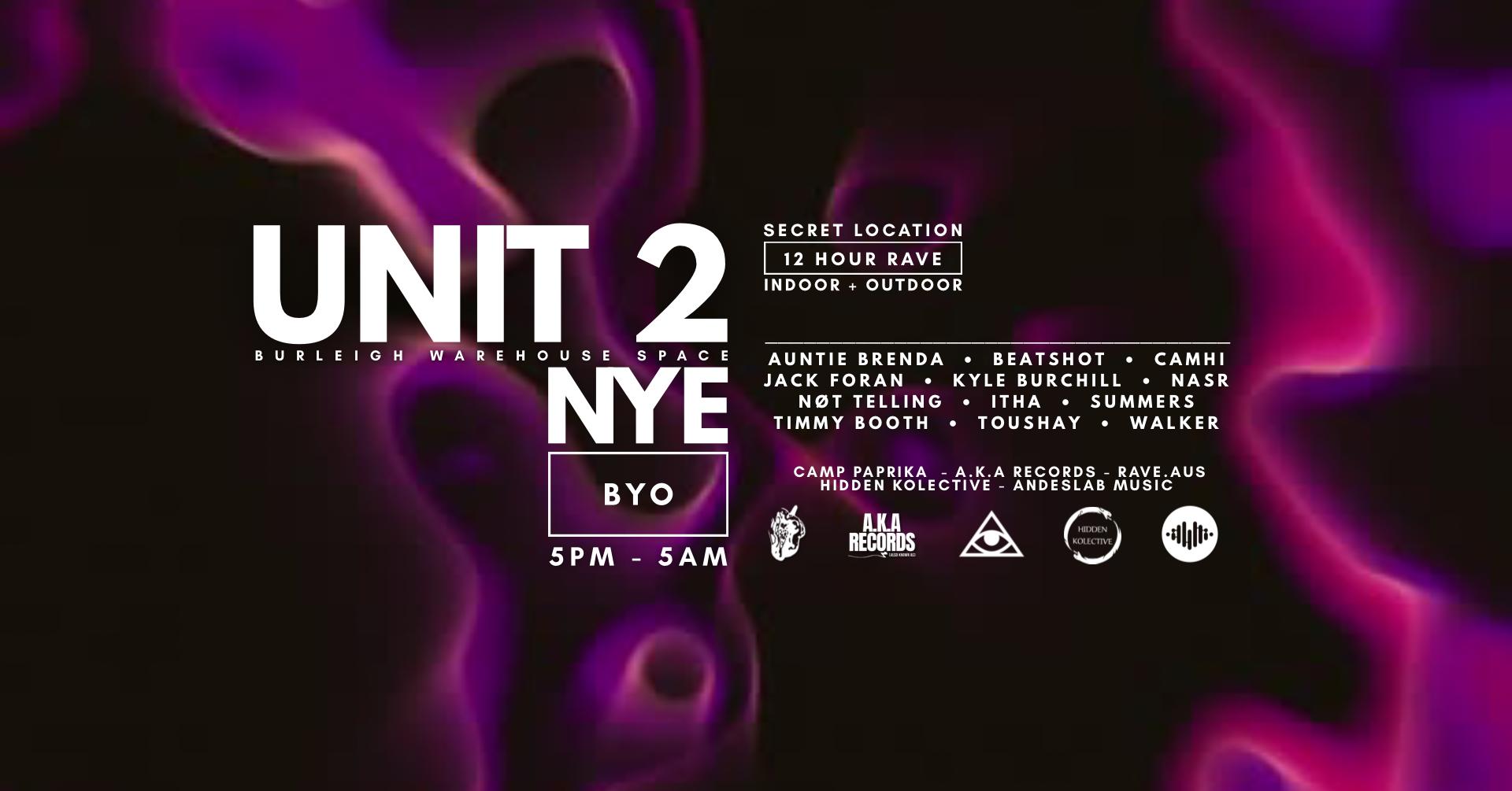 ★ UNIT2 ★BYO Warehouse NYE ★ Wednesday 31st December ★