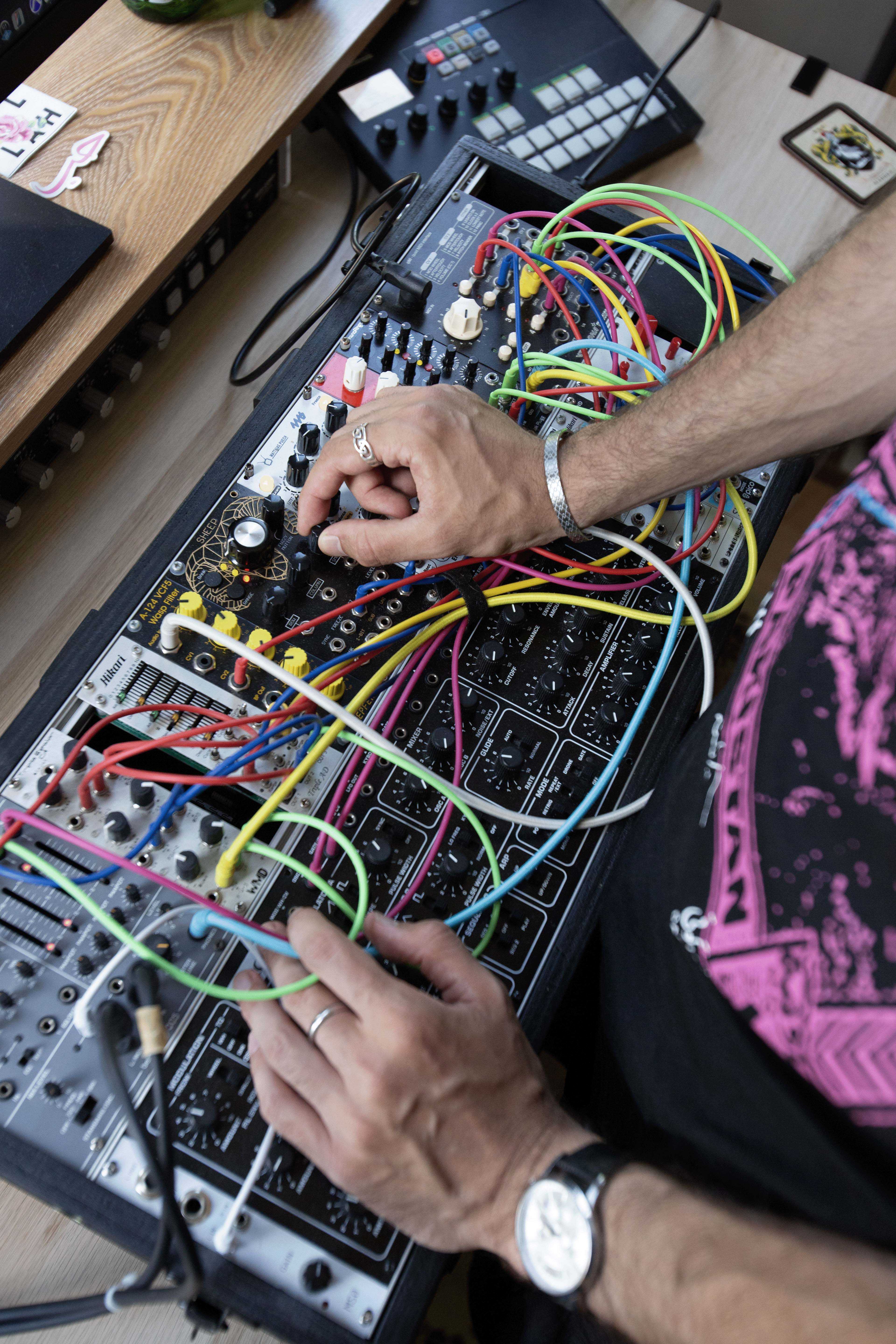 Q: The title references the colourful lights and patch cables of your synths — what type of gear did you use for this release, and how central was it to the final product?