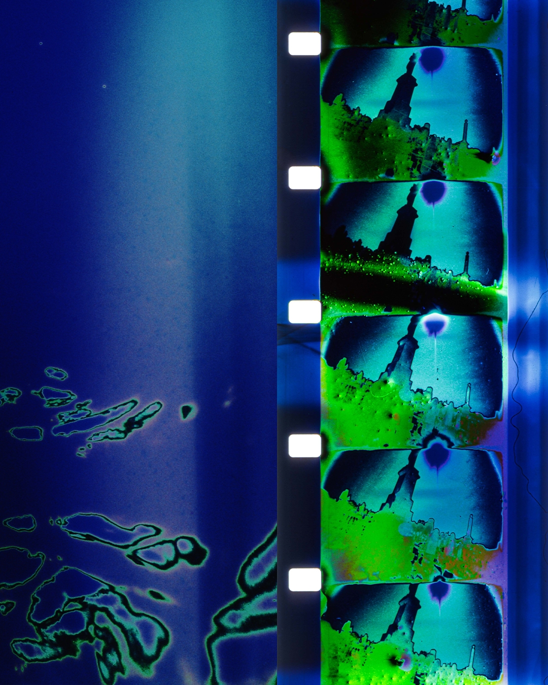 JKK: I was away at our annual Artist Film Workshop in-house/members, 20 of us or so, film festival called Nanofest run by the infamous Richard Tuohy and Dianna Barrie, who are the goated experimental filmmakers, imho. They were running a 16mm experimental workshop where we would be using this 16mm print film stock in a way that Kodak hadn’t intended anyone to use it. The film stock is ‘print film’ in that it is film used to strike a print, via usually a ‘contact printer’, from a camera negative film stock, producing a projector-ready print for projecting in an analog projector for cinema, etc.