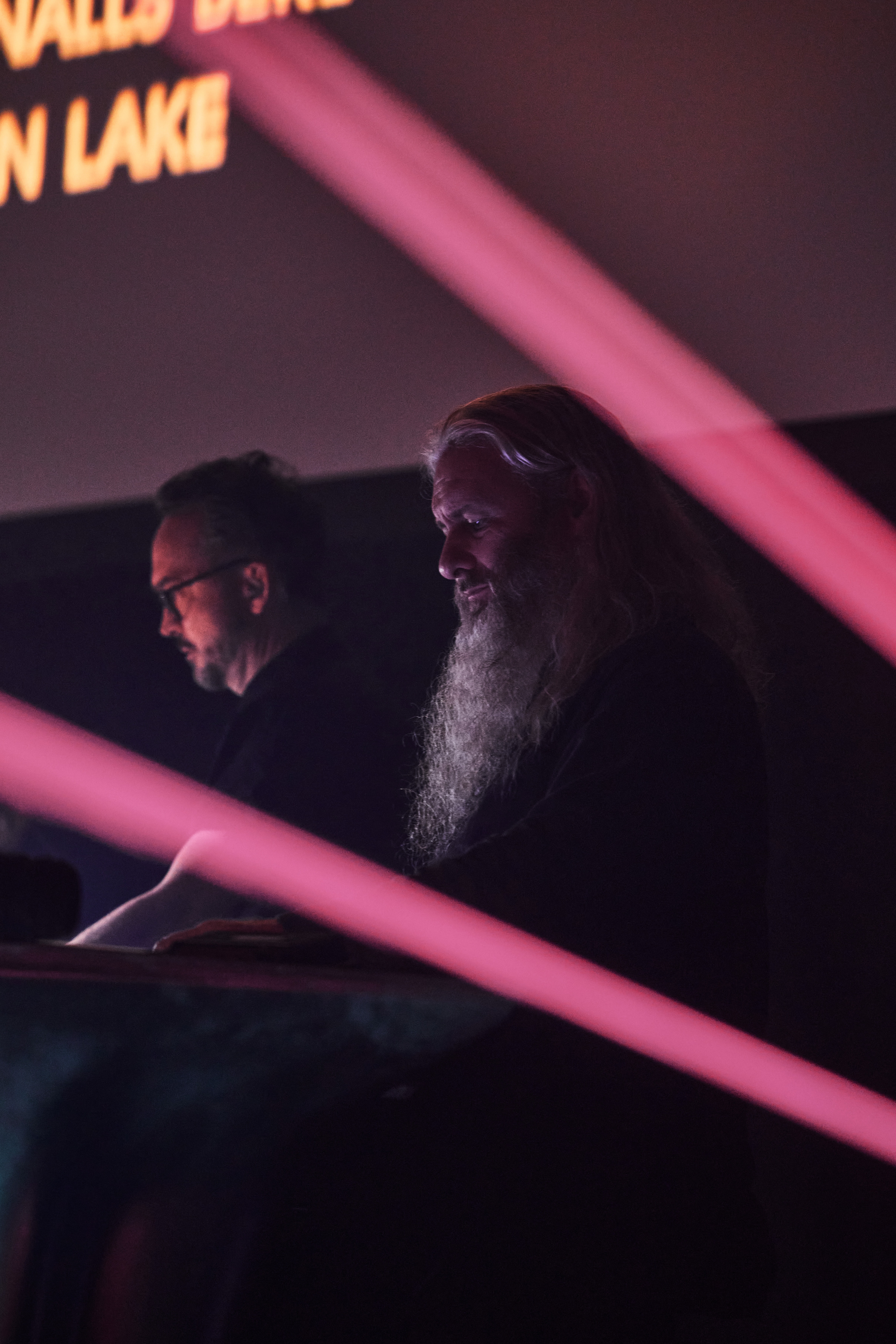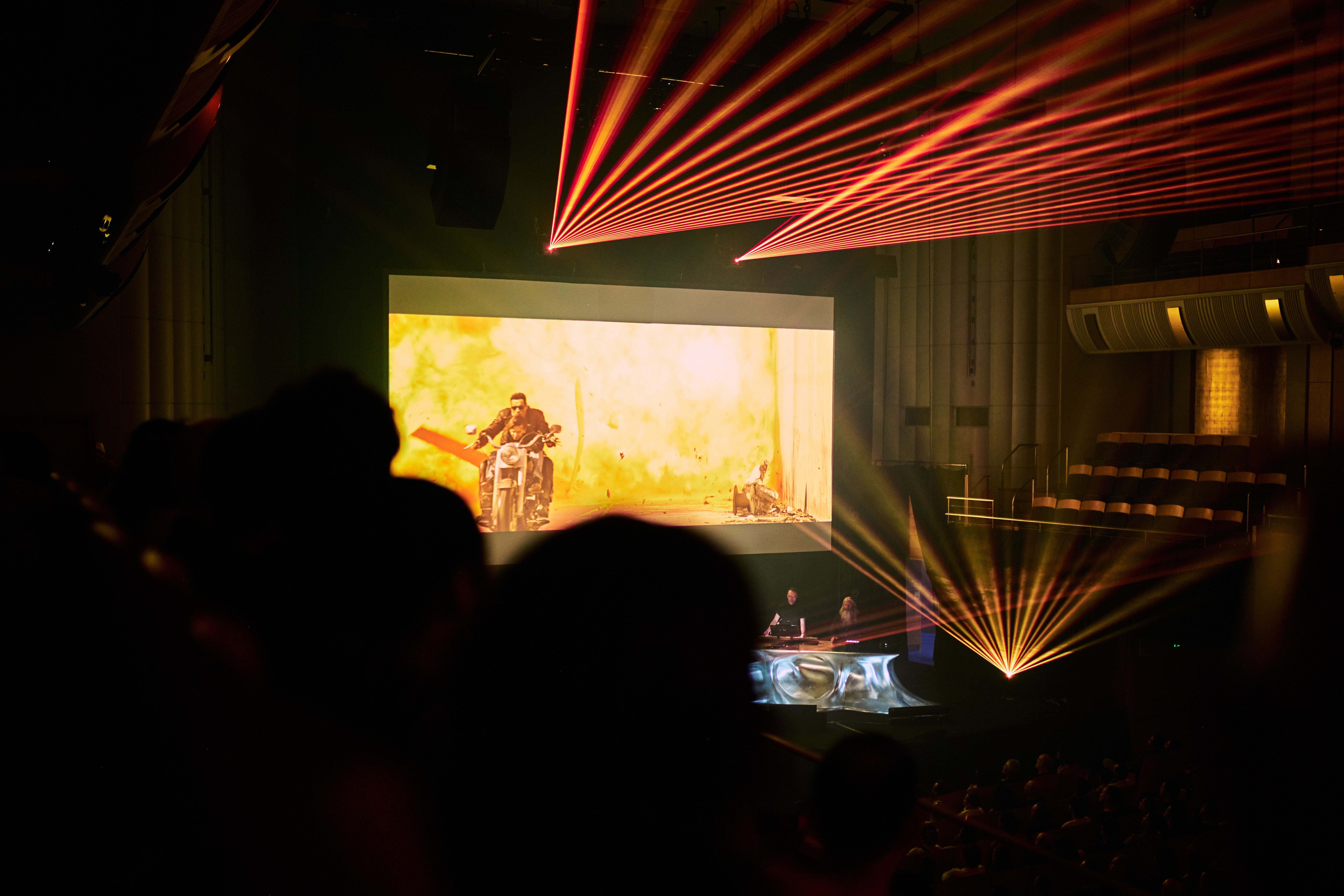 Perhaps even more impressive is the tech behind this screening of Terminator 2. Alongside Peter Van Hoesen, who had worked on the soundtrack seemingly for months, sat the MESS (Melbourne Electronic Sound Studio) Synthesiser Ensemble, as well as MESS’ co-founder Robin Fox, who provided a live laser show. Before the show, speaking with Haydn and his production manager, Todd, I was informed that PVH was acting more like a conductor for the music, mixing in each synthesiser player’s output to create the soundtrack in real time. Robin Fox, however, was set to do his own thing.