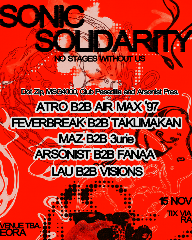 ‘Sonic Solidarity’ takes this protest of Boiler Room to a physical level, purposefully organised to clash with the brand’s events in Naarm and on Gadigal Land, on November 1st and 15th, respectively.